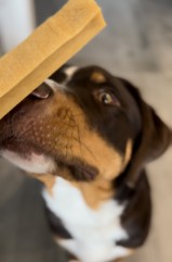 Die Käse-Stangerl wurden gleich beschnüffelt, für lecker befunden und ins sichere Körbchen zum Kautest gebracht. Und was soll ich sagen? Sie sind richtig gut angekommen bei unserem Hund. Eine tolle Alternative zu Fleischvarianten. Und nebenbei wird noch Zahnstein entfernt. Naturbelassen, ohne Konservierungsstoffe und chemische Zusätze. Was möchte Frauchen mehr?!